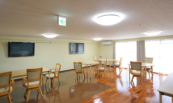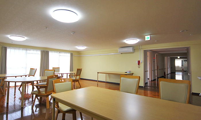 | ■ 共同設備 | :リビング、ダイニング(食堂兼機能訓練室)、医務室、相談室、事務所、厨房、 浴室、脱衣室、洗面室、宿直室、車椅子対応トイレ |